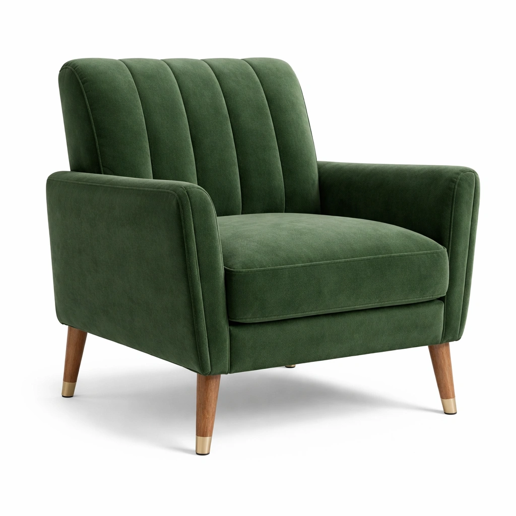 Sillón de terciopelo verde oscuro con patas de madera